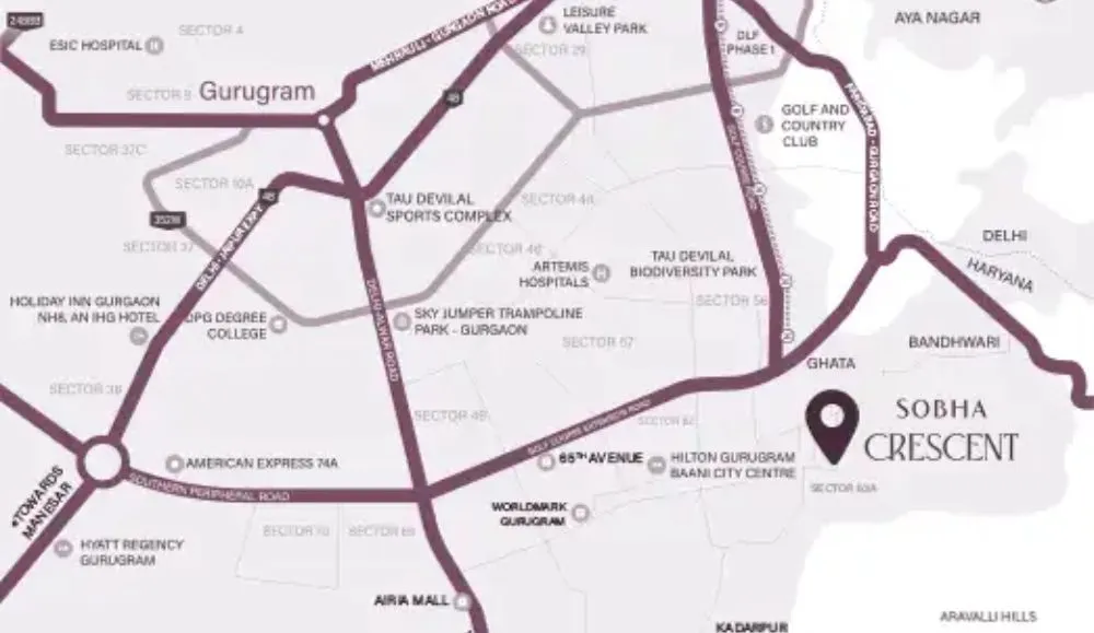 Sobha Crescent is truly a residential masterpiece with iconic advantages that set it apart from other developments. Strategically located in Sector 63A, Gurugram, the project offers premium 3 & 4 BHK homes designed for luxury living, modern comfort, and an elevated lifestyle experience.